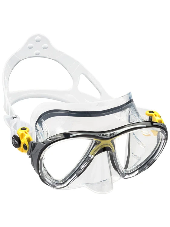 The Cressi Big Eyes Evolution Mask is a revolutionary scuba diving mask as it’s manufactured with high seal, a material that offers extraordinary comfort. The open angle of the skirt allows for the mask to rest on the face with unprecedented comfort and won’t leave any marks on your skin, even after extended use!