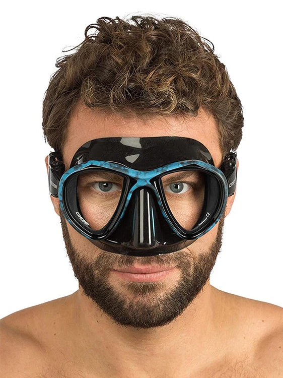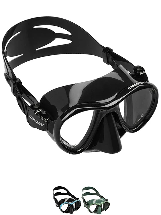 - 2-window low volume mask suitable for freediving, spearfishing and scuba diving