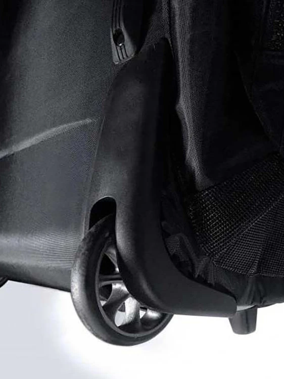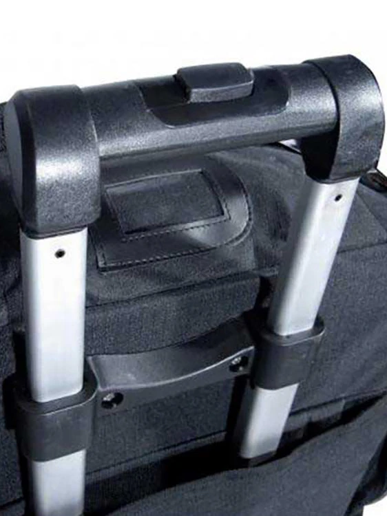 Made from extremely tough 420 denier nylon fabric it has an telescope handle and easy to remove wheels. The main compartment opens on three sides and secures with a tough YKK zipper. It has carry handles at the top and bottom and has a small address tag pocket on the back.Â