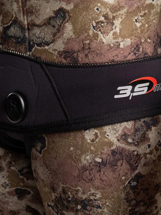 The Cressi Tecnica 3.5mm wetsuit is an apnea or spearfishing suit featuring a green camouflage pattern, great for spearfishing in temperate waters.
