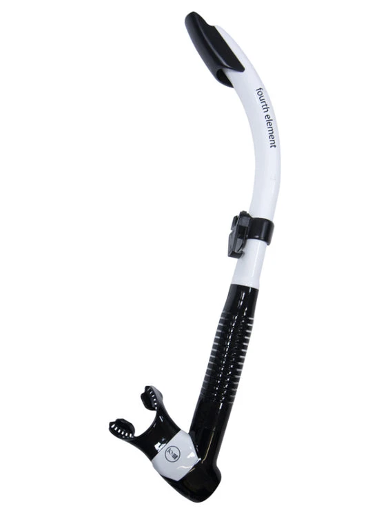 The Fourth Element Splash Snorkel is a semi-dry snorkel, with protection at the top against waves and splashing. The bottom features a one way purge valve where water is collected, allowing you to still breathe easily.