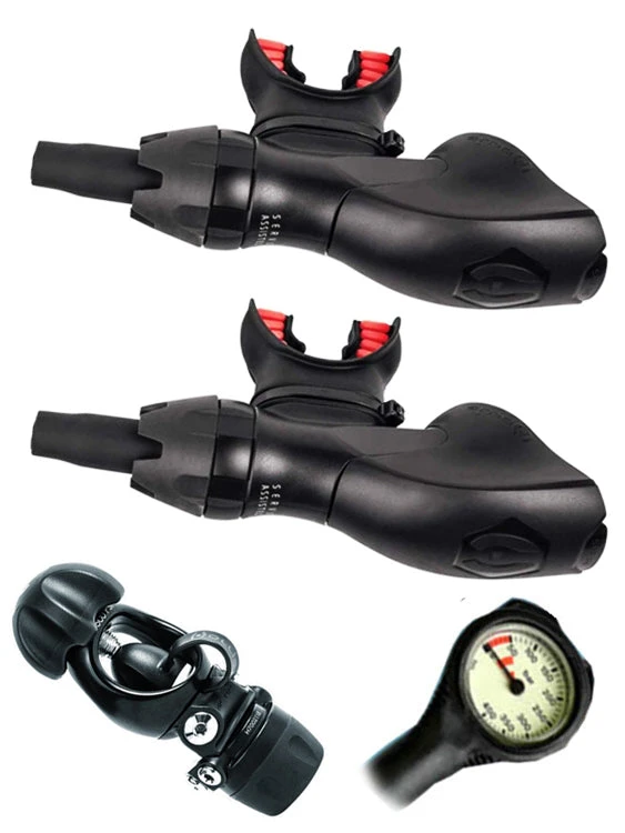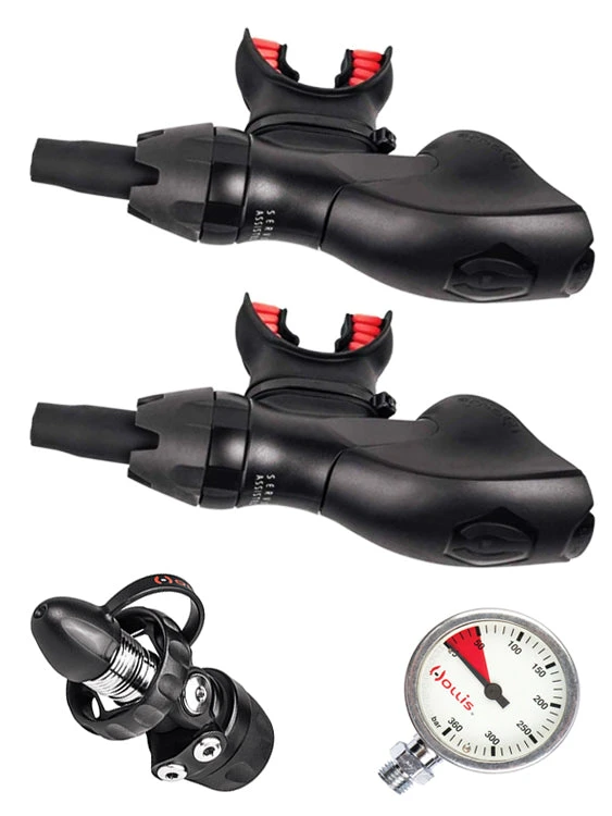 Get the whole set, ready to go. This regulator combo includes the Hollis DC7 first stage, the 500SE second stage and octopus, as well as a free termo SPG. All you need to jump straight into your next adventure.