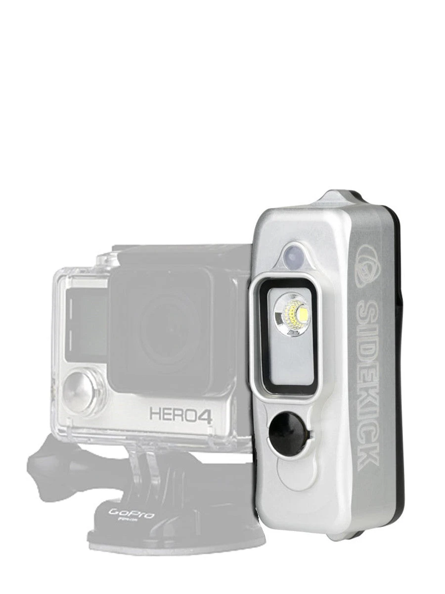 The Light & Motion Sidekick Flood Light is the perfect 600 lumen flood light for your GoPro camera. The Sidekick Flood Light is lighter than your GoPro camera and can be easily mounted on the existing mount with a special adapter that is included in the kit.