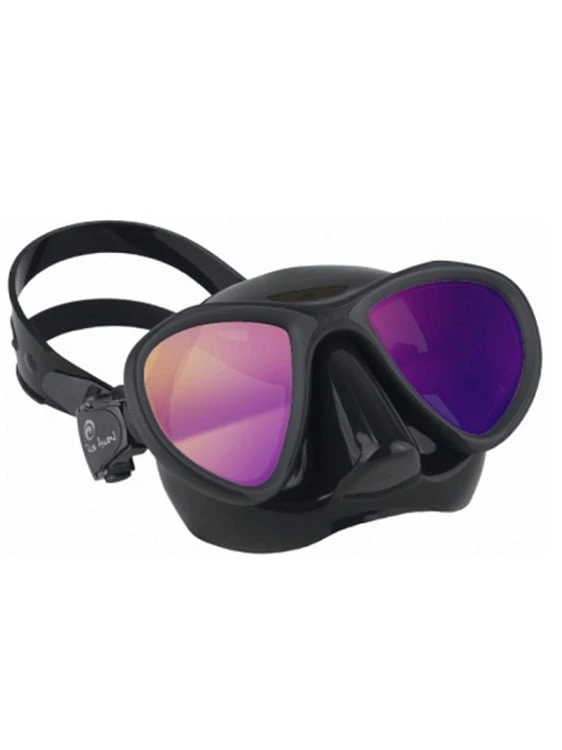 The Snapper Mask has a black design with clear or tinted lenses. It is a double lens mask, suitable for hunting reef fish and deep diving. The dark mask skirt is great for protecting your eyes against the sun.