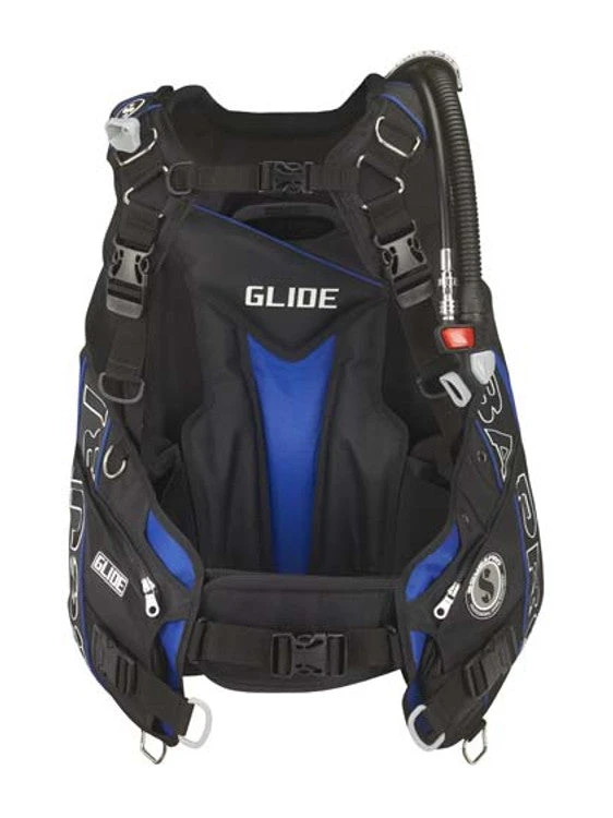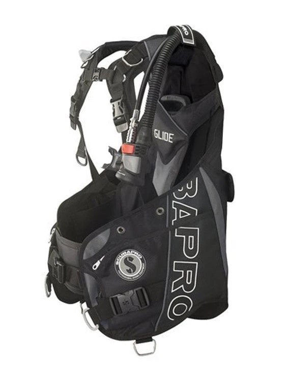 The Scubapro Glide is a front-adjustable jacket style BCD with an innovative Y-Fit shoulder design to maximise stability and comfort. The 420 denier nylon, that this BCD is constructed of, provides you a long-lasting, yet lightweight design. It further features soft neoprene on the neck and a padded backpack area for your ultimate comfort.