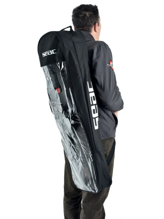 The SEAC Sub Apnea Freediving Fin Bag is an excellent transport solution for your freediving fins! This bag is specifically designed to carry longer fins, like the Motus design. With spacious dimensions (95cm long x 21cm wide x 16cm high), the SEAC Fin Bag will carry your freediving equipment with ease! Includes a convenient shoulder strap and handle, as well as an easy-access zip and translucent front window. Keep in mind that the maximum weight capacity is 4kg!