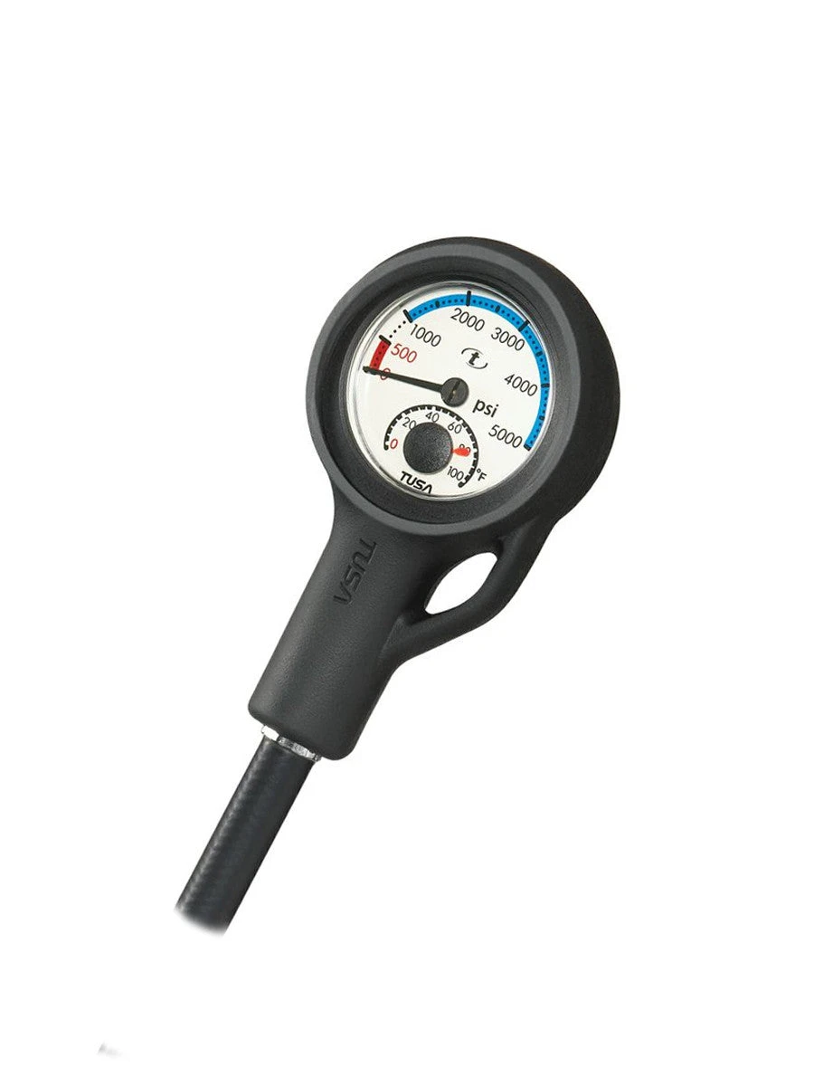 The SCA-150 is a heavy-duty pressure gauge ideal for divers using a wrist-type dive computer like the IQ-650, IQ-750 and IQ-900. The console provides continuous air pressure and temperature in a low-profile rubberized boot. The pressure gauge features a luminscent light storage dial that is highly legible in dark or low visibility conditions. The entire face glows bright enough to make it ideal for night diving or diving in dark areas but contains no radioactive materials.